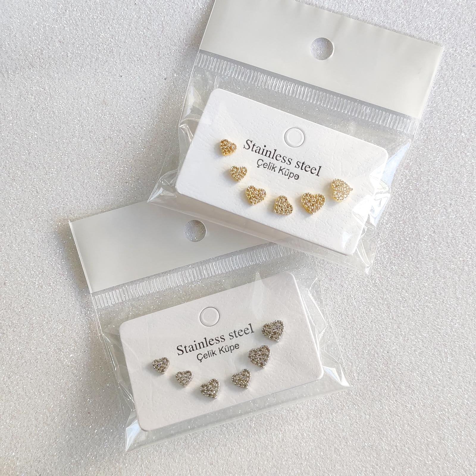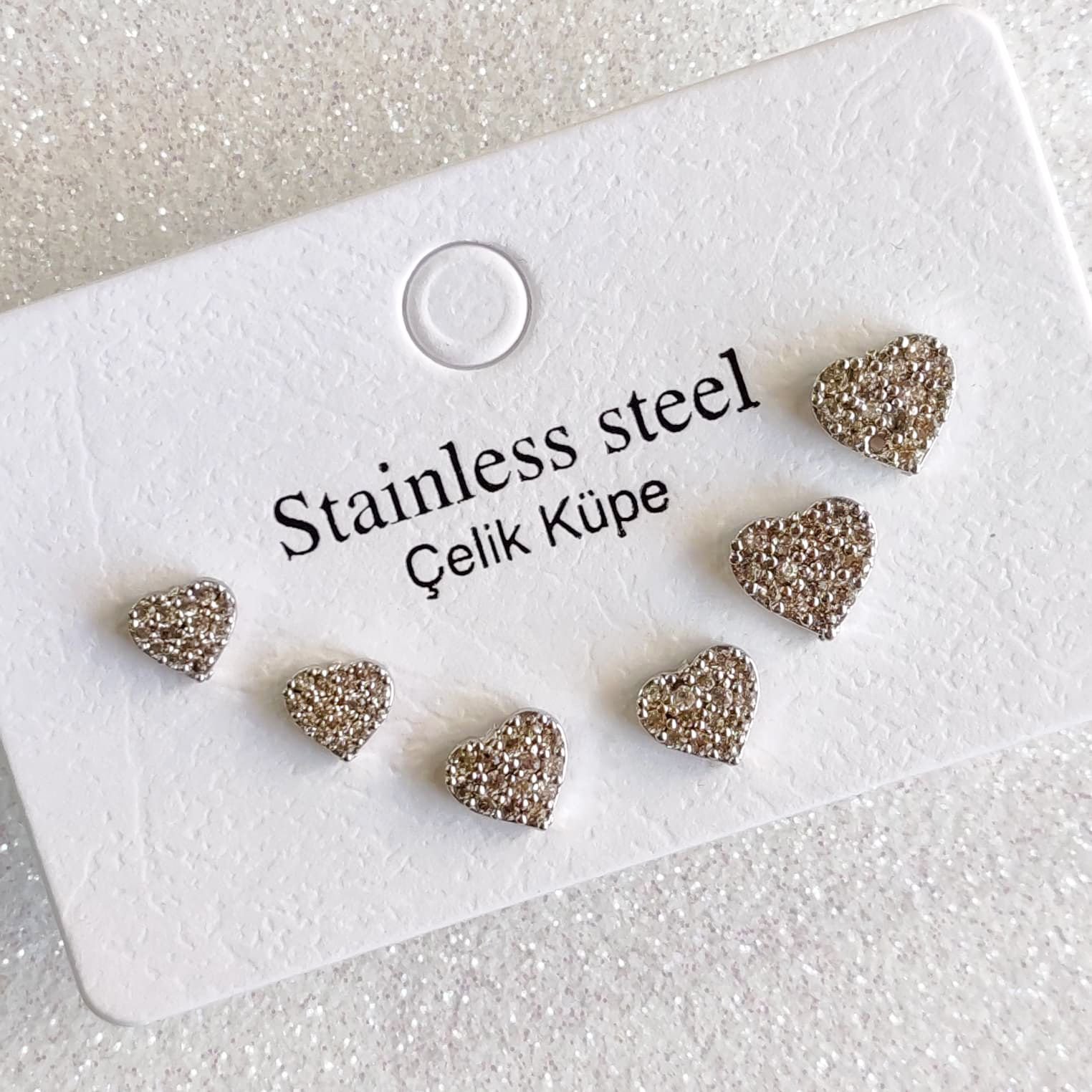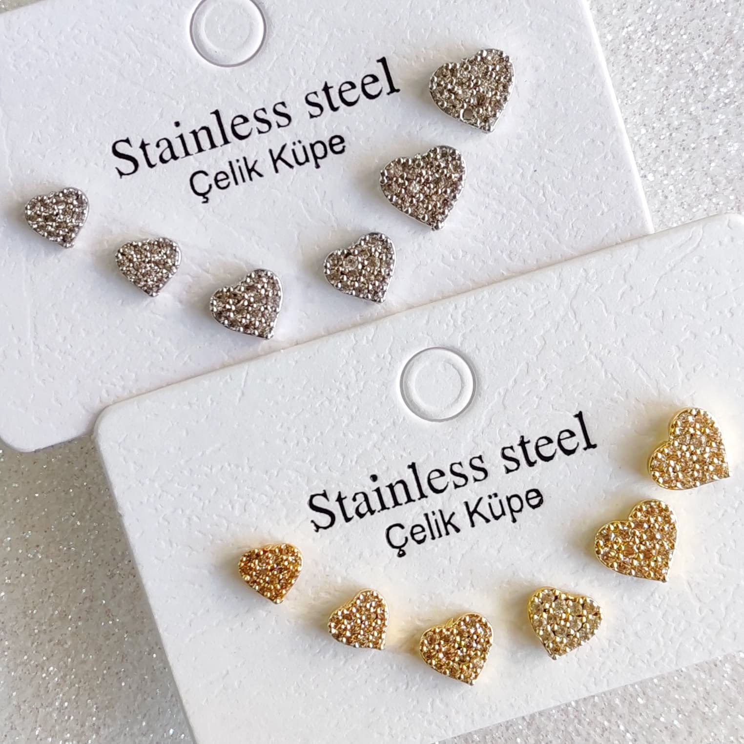 Kalp Çivi Küpe - 6'lı Küpe Seti